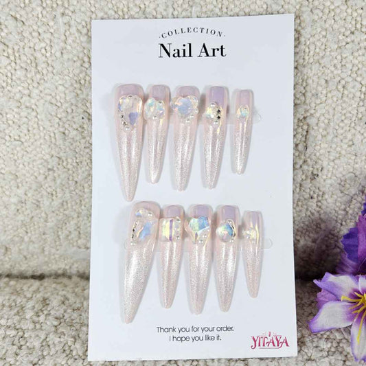Introducing our exquisite collection of handmade press-on nails, where artistry meets elegance....